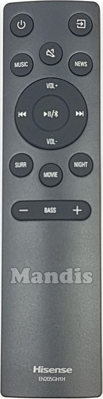 Télécommande d'origine EN205GH1H pour soundbar de la marque Hisense. Il s'agit d'un modèle de télécommande d'origine.