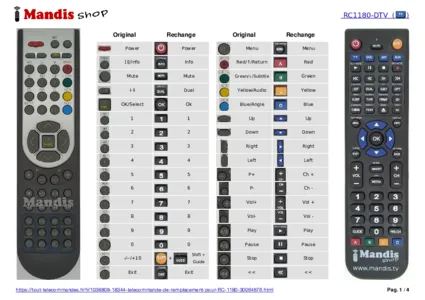 Cette télécommande remplace entièrement votre RC1165 et offre toutes les fonctions de l'originale.