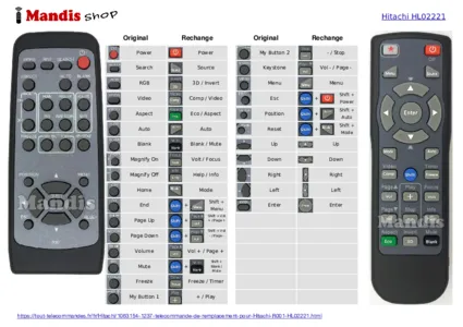 Un document est inclus pour vous aider à utiliser facilement la nouvelle télécommande, en indiquant la correspondance des boutons.