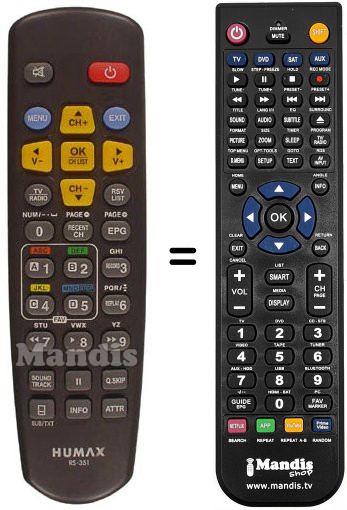 Télécommande qui remplace celle d'origine car elle possède les mêmes fonctions.