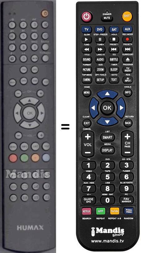 Télécommande qui remplace celle d'origine car elle possède les mêmes fonctions.