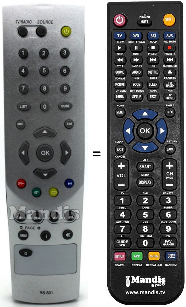 Télécommande qui remplace celle d'origine car elle possède les mêmes fonctions.