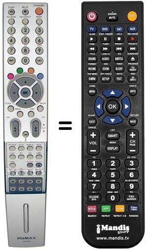 Télécommande qui remplace celle d'origine car elle possède les mêmes fonctions.