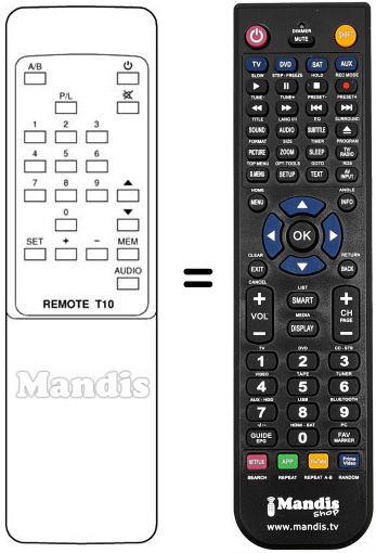 Télécommande qui remplace celle d'origine car elle possède les mêmes fonctions.