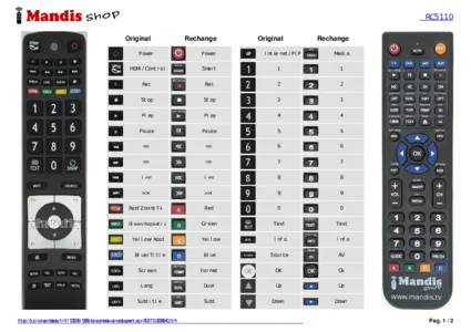 Cette télécommande remplace entièrement votre RC5110 et offre toutes les fonctions de l'originale.