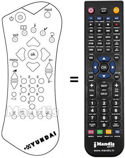 Télécommande qui remplace celle d'origine car elle possède les mêmes fonctions.