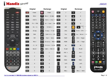 Cette télécommande remplace entièrement votre HD450T et offre toutes les fonctions de l'originale.