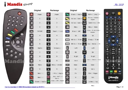 Cette télécommande remplace entièrement votre RS-101P et offre toutes les fonctions de l'originale.