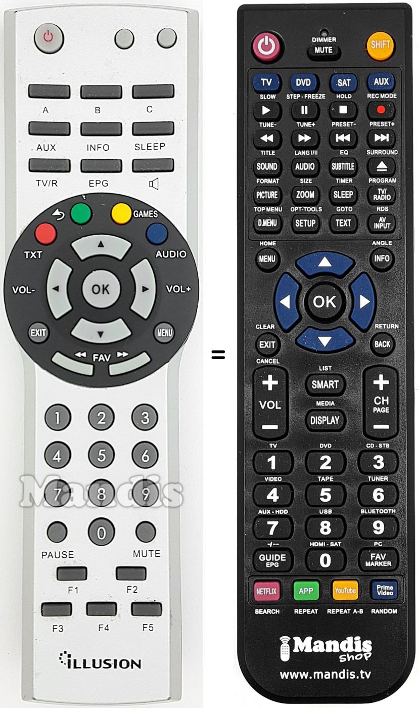 Télécommande qui remplace celle d'origine car elle possède les mêmes fonctions.