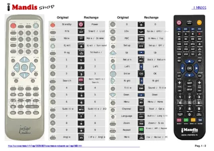 Un document est inclus pour vous aider à utiliser facilement la nouvelle télécommande, en indiquant la correspondance des boutons.