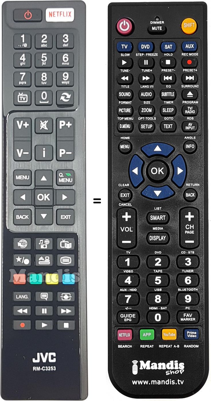 Télécommande qui remplace celle d'origine car elle possède les mêmes fonctions.