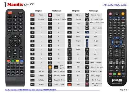 Un document est inclus pour vous aider à utiliser facilement la nouvelle télécommande, en indiquant la correspondance des boutons.