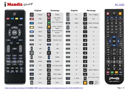 Cette télécommande remplace entièrement votre RC1205 et offre toutes les fonctions de l'originale.
