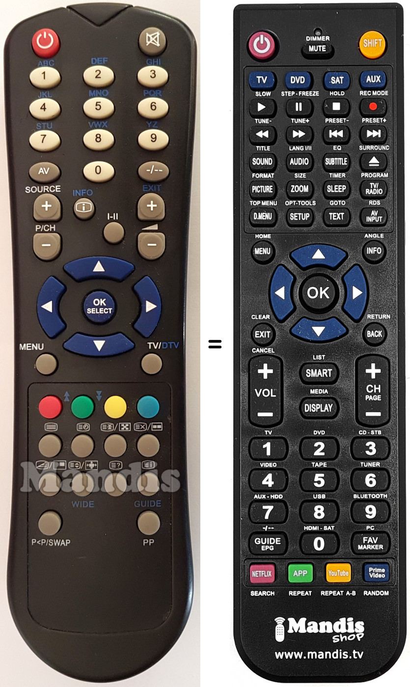 Télécommande qui remplace celle d'origine car elle possède les mêmes fonctions.