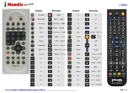 Cette télécommande remplace entièrement votre INO001 et offre toutes les fonctions de l'originale.