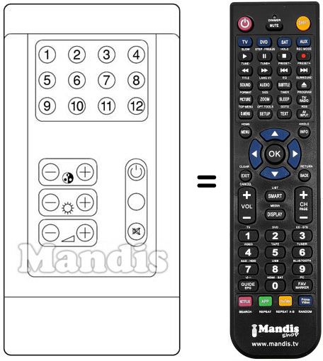 Télécommande qui remplace celle d'origine car elle possède les mêmes fonctions. Il ne s'agit pas d'une télécommande universelle mais d'une télécommande qui remplace celle d'origine. Vous recevrez la télécommande prête à fonctionner, vous n'aurez qu'à mettre les piles. Il n'est pas nécessaire de la programmer. Nous vous garantissons que la télécommande aura exactement les mêmes fonctions que celle d'origine.