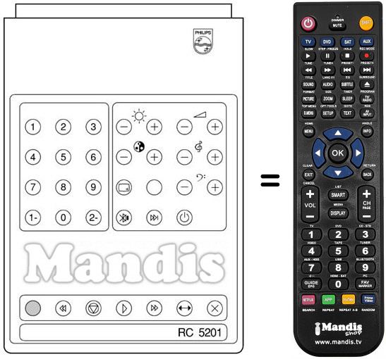 Télécommande qui remplace celle d'origine car elle possède les mêmes fonctions.