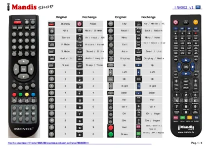 Cette télécommande remplace entièrement votre INV0024LEDHD et offre toutes les fonctions de l'originale.