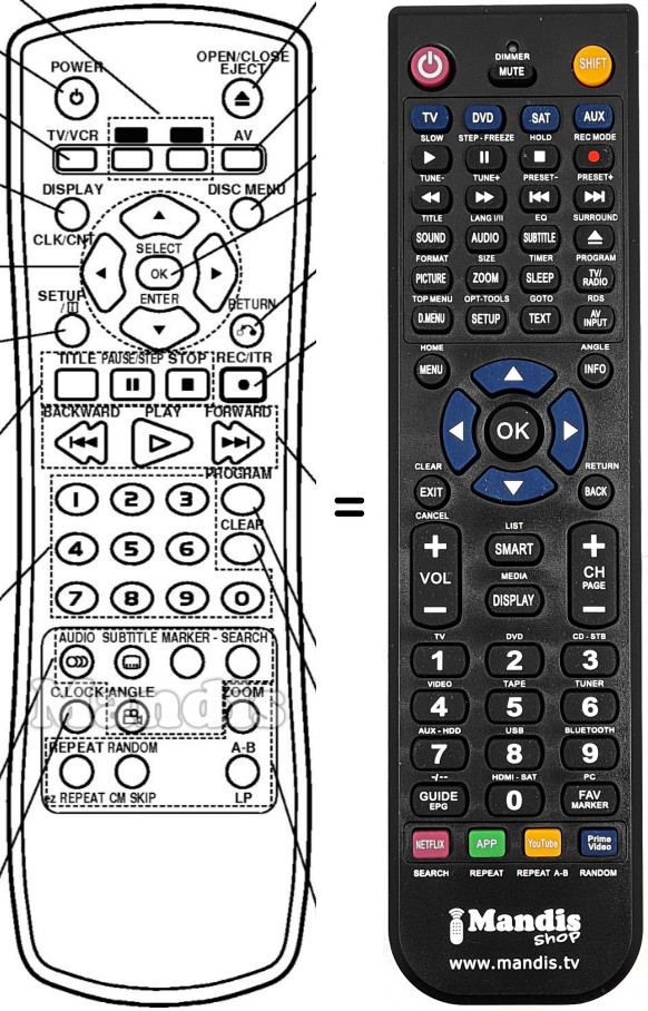 Télécommande qui remplace celle d'origine car elle possède les mêmes fonctions.