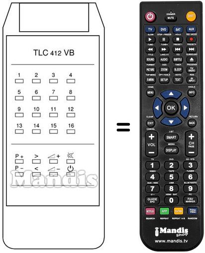 Télécommande qui remplace celle d'origine car elle possède les mêmes fonctions.
