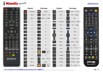 Un document est inclus pour vous aider à utiliser facilement la nouvelle télécommande, en indiquant la correspondance des boutons.