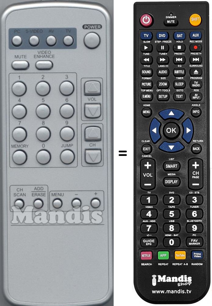 Télécommande qui remplace celle d'origine car elle possède les mêmes fonctions.