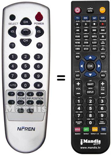 Télécommande qui remplace celle d'origine car elle possède les mêmes fonctions.