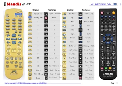 Un document est inclus pour vous aider à utiliser facilement la nouvelle télécommande, en indiquant la correspondance des boutons.