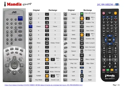 Un document est inclus pour vous aider à utiliser facilement la nouvelle télécommande, en indiquant la correspondance des boutons.