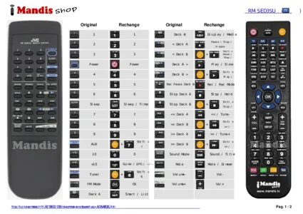 Cette télécommande remplace entièrement votre RM-SED3SU et offre toutes les fonctions de l'originale.