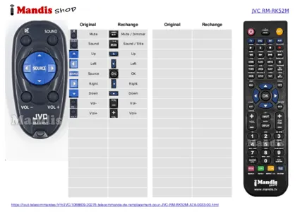 Cette télécommande remplace entièrement votre RM-RK52M (A7A-0033-00) et offre toutes les fonctions de l'originale.