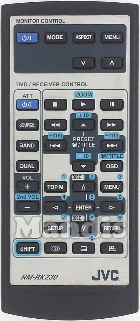 Télécommandes équivalentes qui remplacent la télécommande JVC RM-RK230 et possèdent exactement les mêmes fonctions :