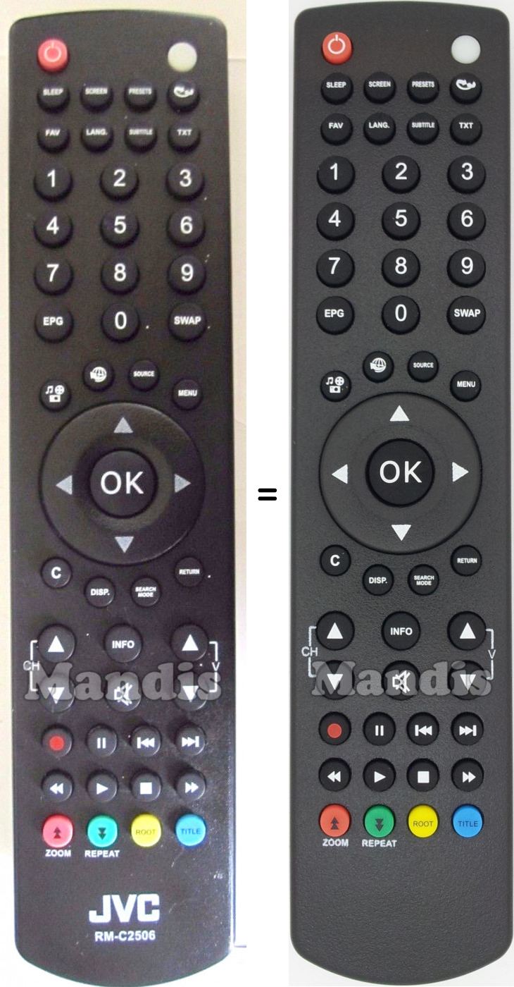 Télécommandes équivalentes qui remplacent la télécommande JVC RC 1910 (30070046) et possèdent exactement les mêmes fonctions :