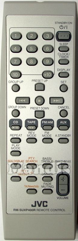 Télécommande d'origine RMSUXP400R (RM-SUXP400RW2) pour chaînes hi-fi et récepteurs av de la marque JVC. Il s'agit d'un modèle de télécommande d'origine.