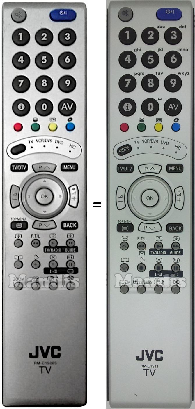 Télécommande d'origine RM-C 1911 (RM-C1911S-1C) pour Téléviseurs de la marque JVC.