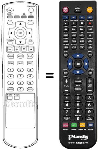 Télécommande qui remplace celle d'origine car elle possède les mêmes fonctions.