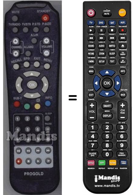Télécommande qui remplace celle d'origine car elle possède les mêmes fonctions.