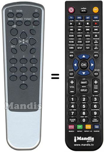 Télécommande qui remplace celle d'origine car elle possède les mêmes fonctions.