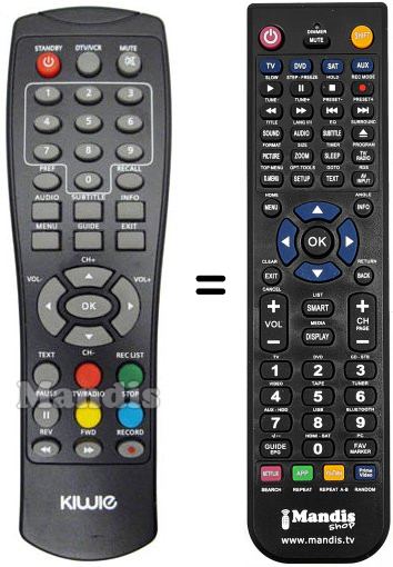 Télécommande qui remplace celle d'origine car elle possède les mêmes fonctions.