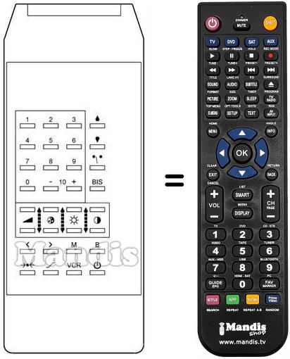 Télécommande qui remplace celle d'origine car elle possède les mêmes fonctions.