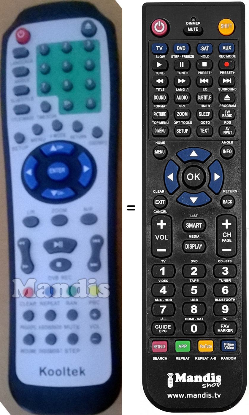 Télécommande qui remplace celle d'origine car elle possède les mêmes fonctions.