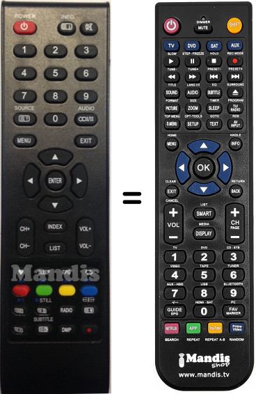 Télécommande qui remplace celle d'origine car elle possède les mêmes fonctions.