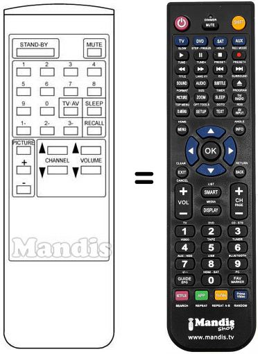 Télécommande qui remplace celle d'origine car elle possède les mêmes fonctions.
