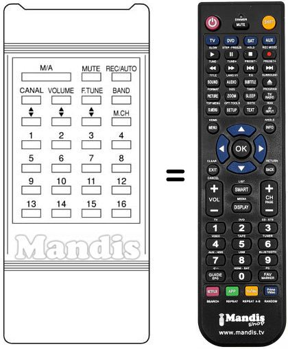 Télécommande qui remplace celle d'origine car elle possède les mêmes fonctions.