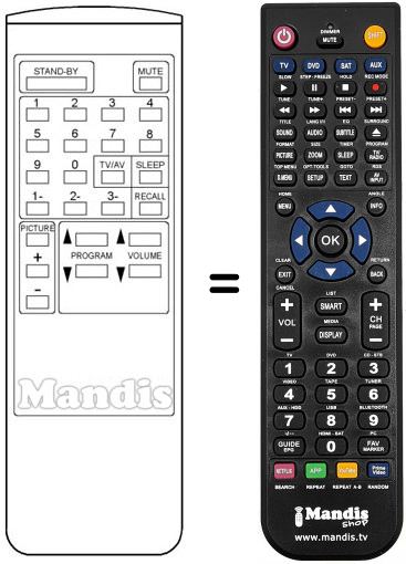 Télécommande qui remplace celle d'origine car elle possède les mêmes fonctions.