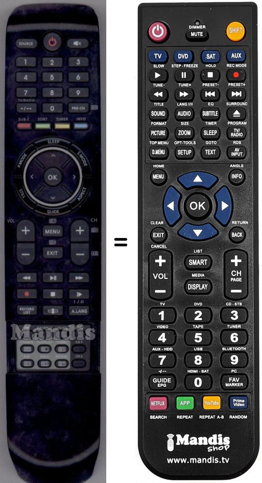 Télécommande qui remplace la télécommande d'origine RCU 800 car elle possède les mêmes fonctions.