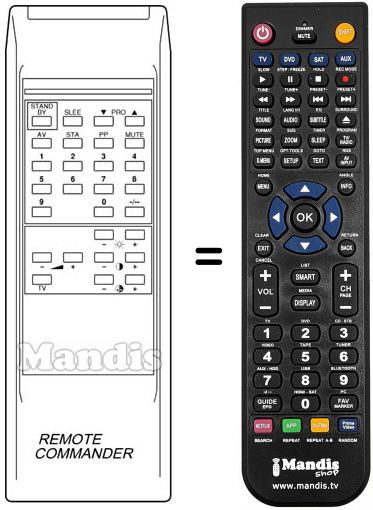 Télécommande qui remplace celle d'origine car elle possède les mêmes fonctions.