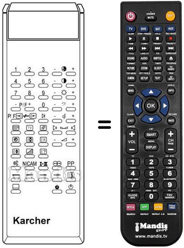 Télécommande qui remplace celle d'origine car elle possède les mêmes fonctions.
