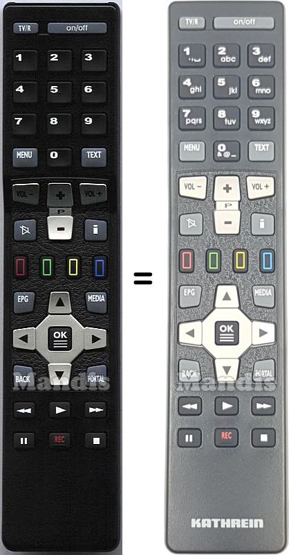 Télécommandes équivalentes qui remplacent la télécommande KATHREIN RC675 et possèdent exactement les mêmes fonctions :