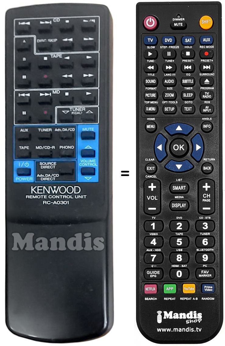 Télécommande qui remplace celle d'origine car elle possède les mêmes fonctions.